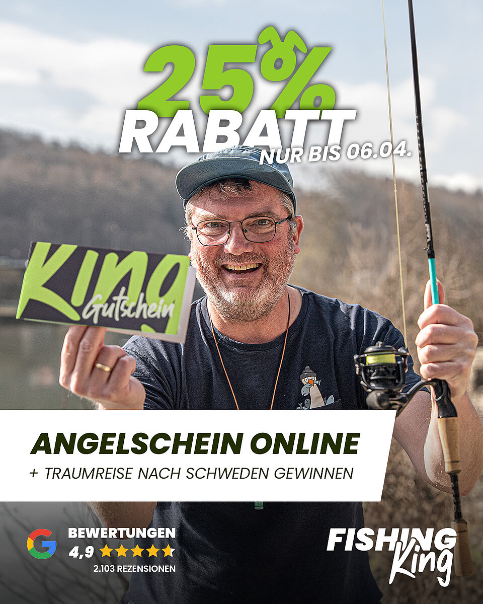 25% Rabatt auf alle Onlinekurse und Gutscheine zum Angelschein